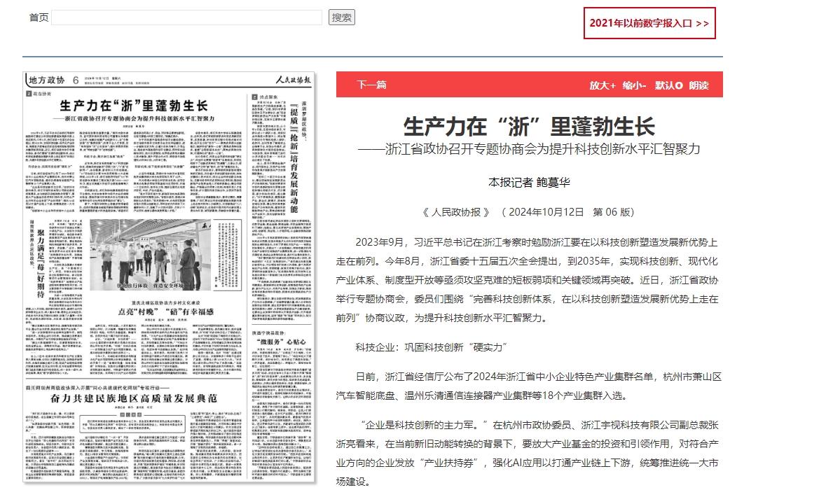 2023年9月,习近平总书记在浙江考察时勉励浙江要在以科技创新塑造发展新优势上走在前列。今年8月,浙江省委十五届五次全会提出,到2035年,实现科技创新、现代化产业体系、制度型开放等亟须攻坚克难的短板弱项和关键领域再突破。近日,浙江省政协举行专题协商会,委员们围绕“完善科技创新体系,在以科技创新塑造发展新优势上走在前列”协商议政,为提升科技创新水平汇智聚力。