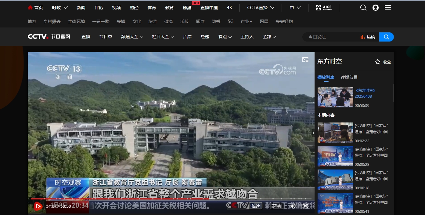 中央电视台新闻频道《东方时空》栏目就围绕贯彻落实《意见》精神,加快推动浙江高校毕业生高质量充分就业工作采访了浙江省教育厅党组书记、厅长陈春雷。其中,一组我校近年来密切结合地方经济社会发展需求,推动人才培养改革的画面作为资料出现在采访背景中。(点击观看,大约在视频32'58"处)