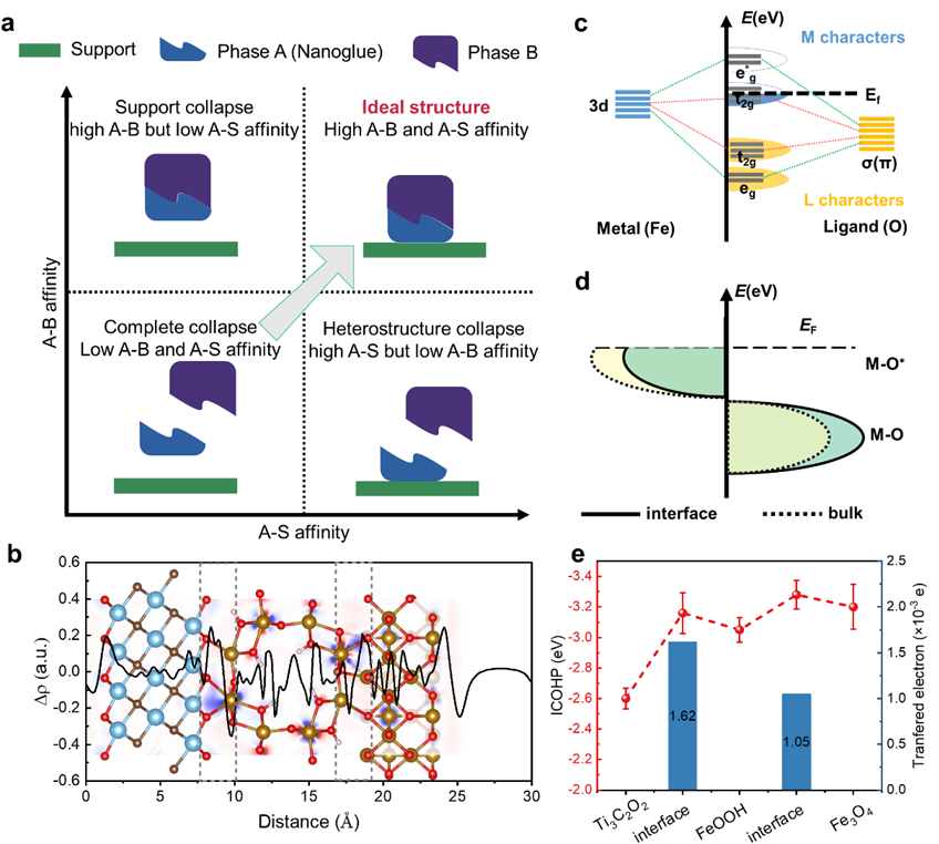 MXene由于具较高的导电性、亲水性和机械强度,在锂离子电池、超级电容器、燃料电池等储能领域具有极大的应用前景。作为锂电池负极材料时,Li阳离子可以在MXene之间进行有效的脱嵌,表现出赝电容行为。然而,在循环过程中MXene会自发塌缩和堆垛,进一步阻碍锂离子的传输。本研究提出了一种利用界面来增强基底和异质结相之间结合的高效策略,以提高整体结构的稳定性。这种设计不仅产生了丰富的异质结和连续的离子/电子传输通道,还保持了出色的电化学可逆性。
