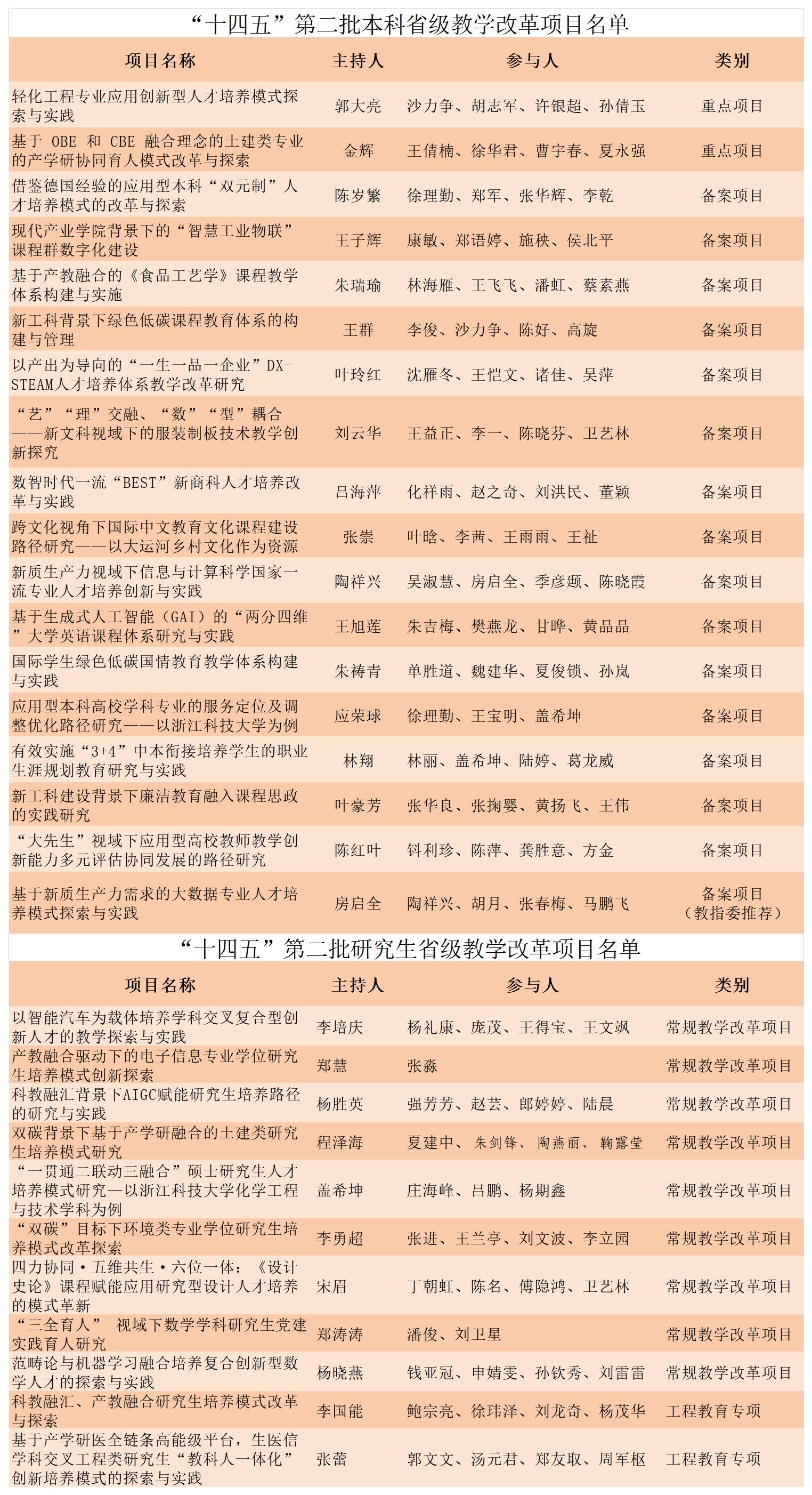 近日,浙江省教育厅办公室发布《关于公布“十四五”第二批本科和研究生省级教学改革项目的通知》,我校共29个项目获得立项,其中18个本科生教学改革项目获得立项,11个研究生教学改革项目获得立项。