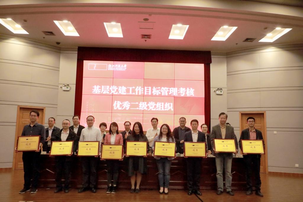 会上,校党委副书记张日向宣读有关表彰文件。校领导为获得2024年度学校基层党建工作目标管理考核优秀的二级党组织、获评2024年度考核优秀和特殊贡献奖的单位(部门)名单颁奖。