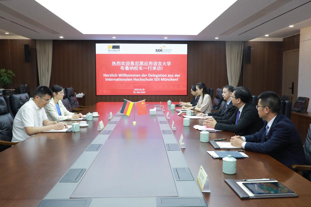5月30日上午,德国慕尼黑应用语言大学校长克劳蒂娅·布鲁纳率团来访,校长陈建孟、副校长李其朋会见代表团一行。