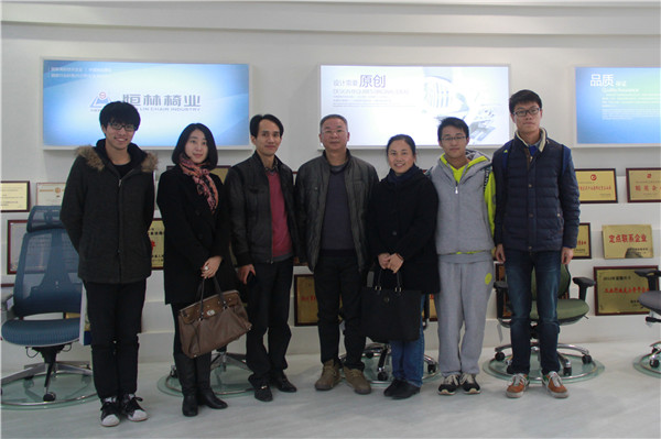 王郑兴学长带领母校的老师和学弟们参观了企业产品展示中心,让大家亲身体验了一回时尚的“坐文化”,同时介绍了恒林椅业的发展历程、产品研发、行业地位等情况以及未来发展愿景。王郑兴学长结合自己的求学经历和职业生涯规划与学弟们进行了交流,也乐意为学弟学妹们提供实习实践及就业岗位。