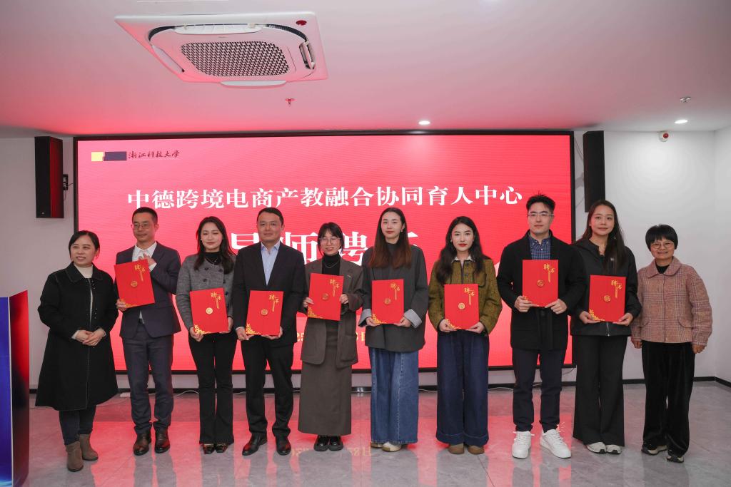 仪式上,中德学院与安吉县商务局正式签署战略合作协议,共同为“中德跨境电商产教融合协同育人中心”揭牌。中德学院与思睿智训、盈科律所、尚坤集团等企业签署相关合作协议。该中心将聚焦“AI+外语+跨境电商+法商”的复合型人才培养,打造产教融合协同育人新范式。